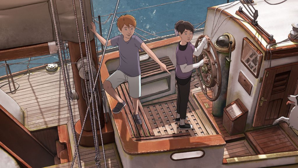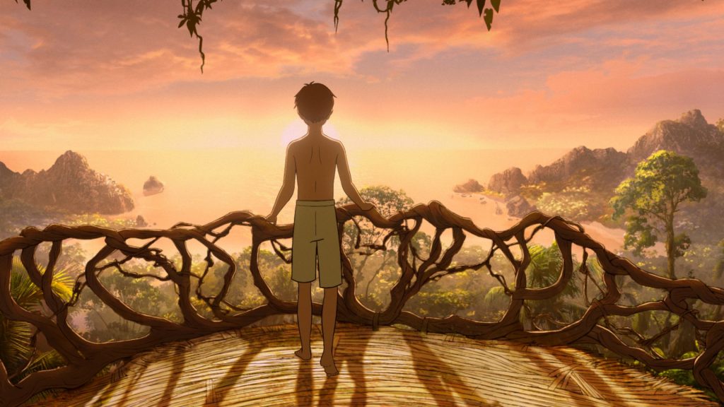 Le film, qui évoque en filigrane le personnage de Robinson Crusoé, nous immerge dans le monde naturel de cette île où se déploie la richesse d’une faune et d’une flore préservées de la prédation humaine. Les personnages, humains et animaux, évoluent dans des décors créés à partir de dessins, d’éléments 3D et de photographies, dont la profondeur permet de se plonger pleinement dans cette nature luxuriante, une puissance d’évocation encore renforcée par le cinémascope.